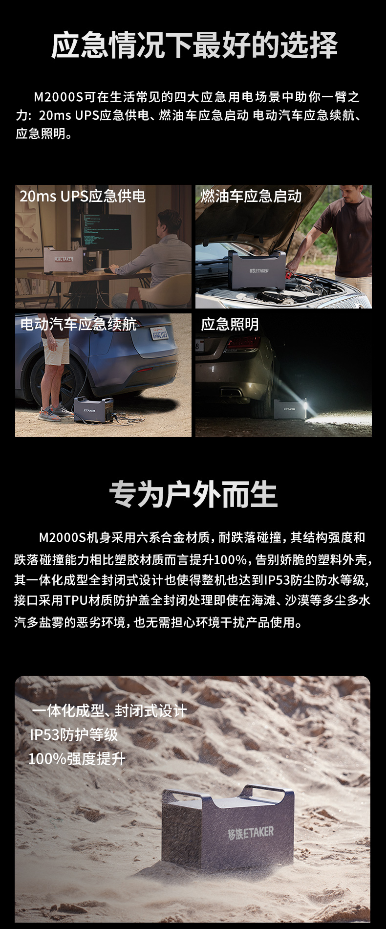 M2000S戶外電源是深圳市移族創新科技有限公司的主要產品之一,ETAKER是一家以技術創新驅動的家庭和移動能源的整體方案提供者,憑借對品質的追求與對客戶的真誠服務贏得市場口碑,本頁面為您介紹技術詳情,歡迎查看。